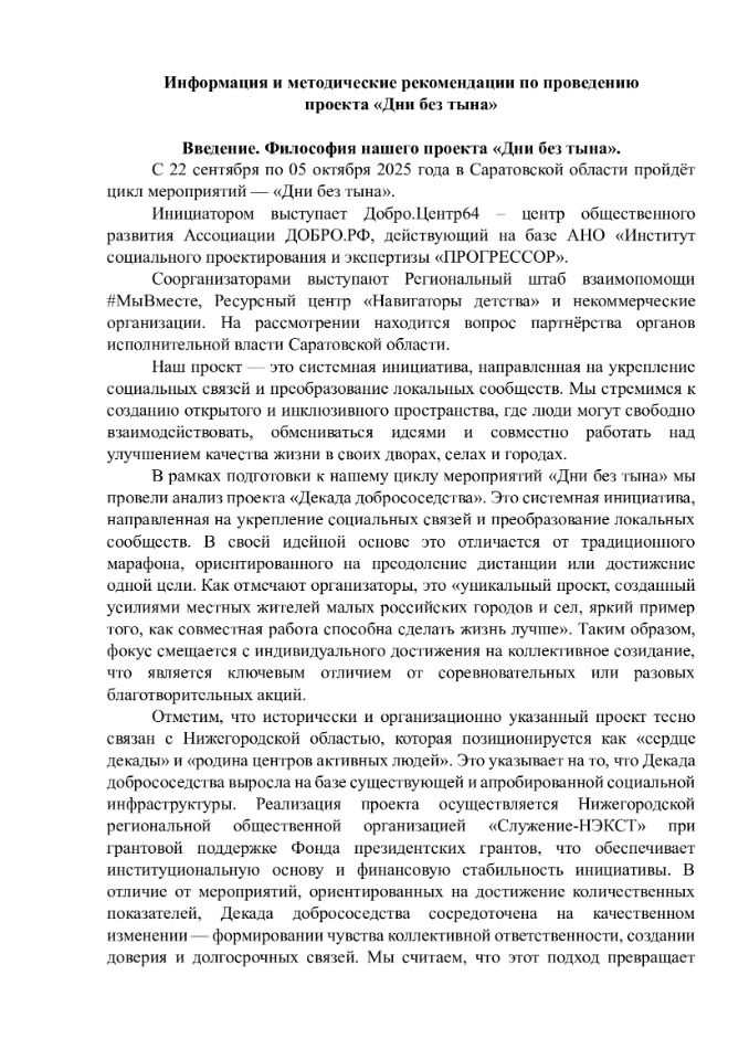 С 22 сентября по 05 октября 2025 года в Саратовской области проШЁЛ марафон «Дни без тына».